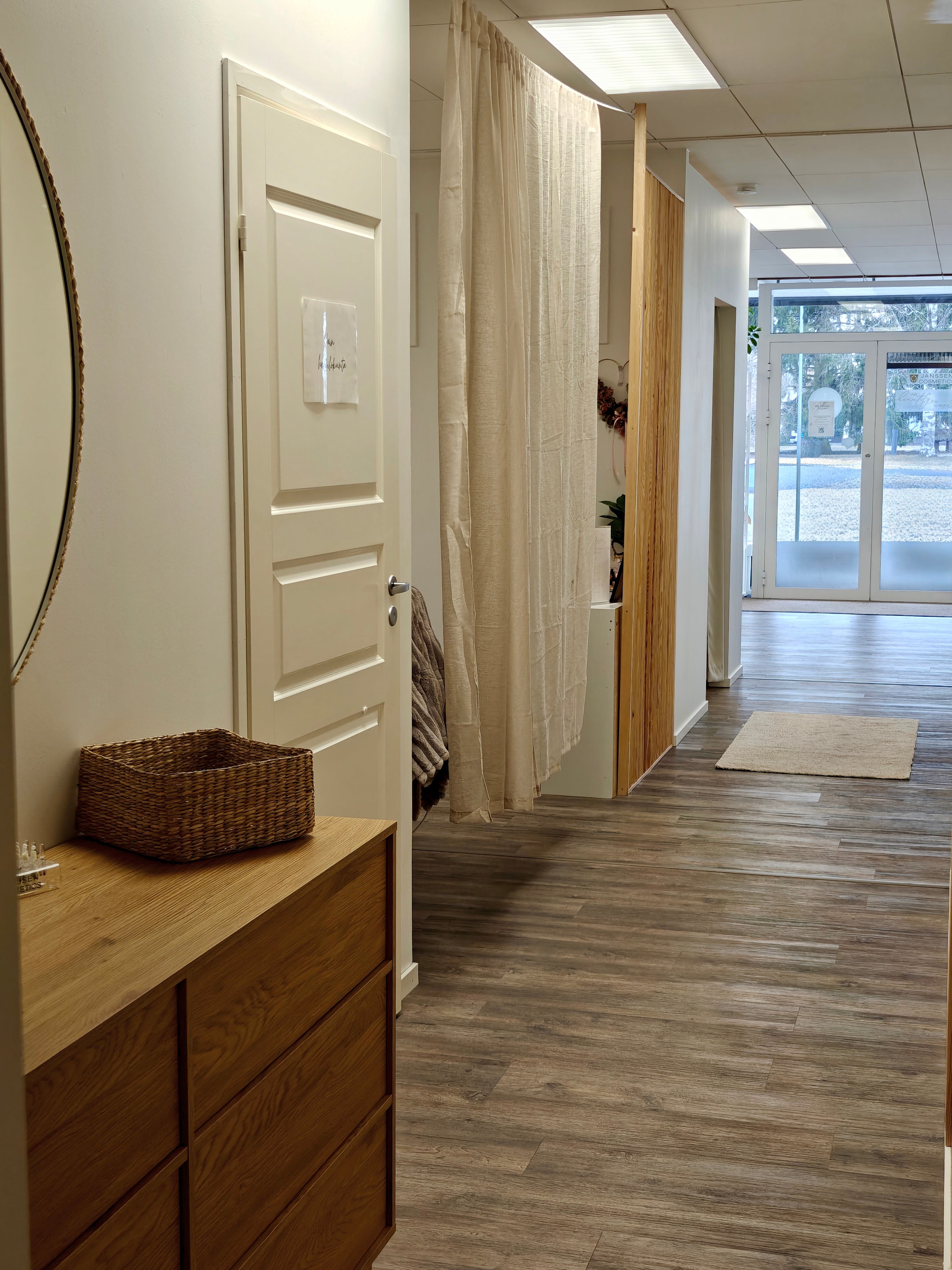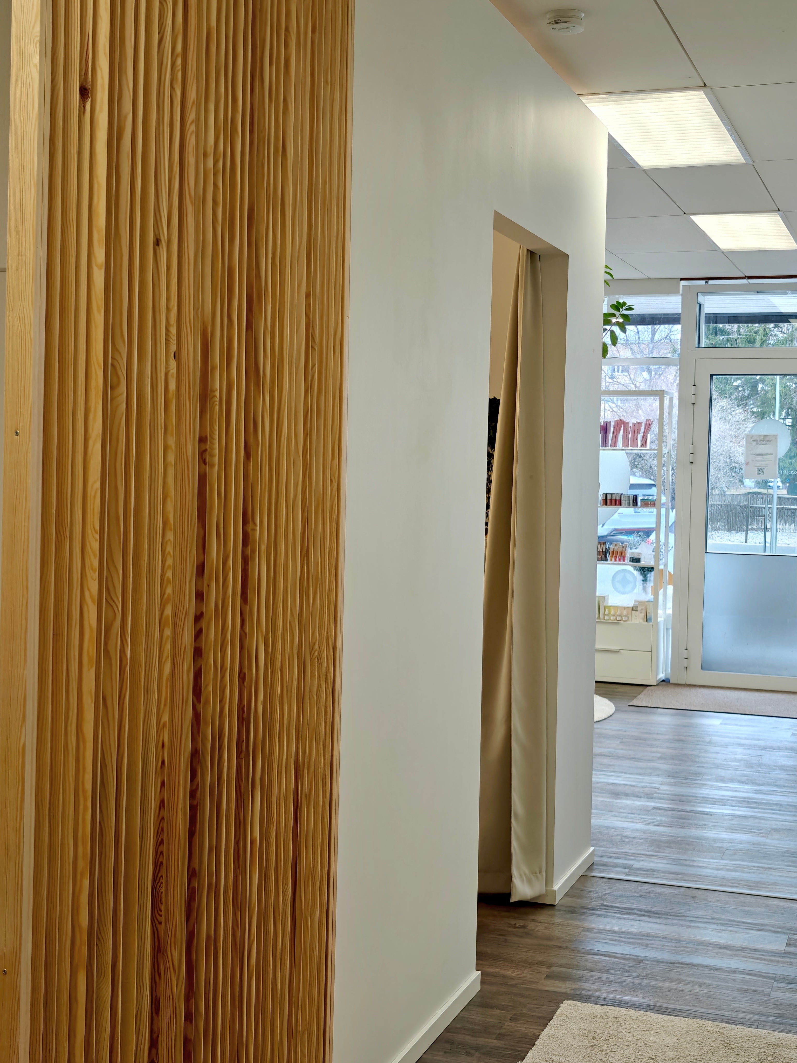 Aluksi löydät hoitolastamme ripsi- ja kulmapisteemme sekä kynsipisteen. Hoitolan perällä on rauhoitetut huoneemme.